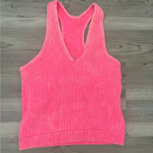 Acid Washed Hot Pink Racer back Ribbed crop size L/XL with removable pads - $21 - From Beth