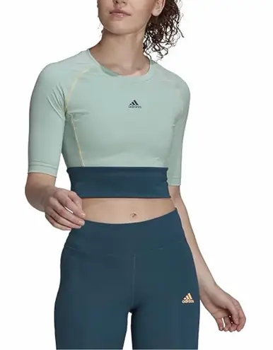 Teal crop top Short sleeve Fitted Size M 17” pit to pit 15” shoulder to hem No known flaws