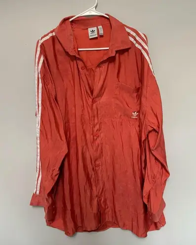 Adidas Originals brand Size large Orange color Satin material Button-Up Shirt Stylish coral butto... Show more