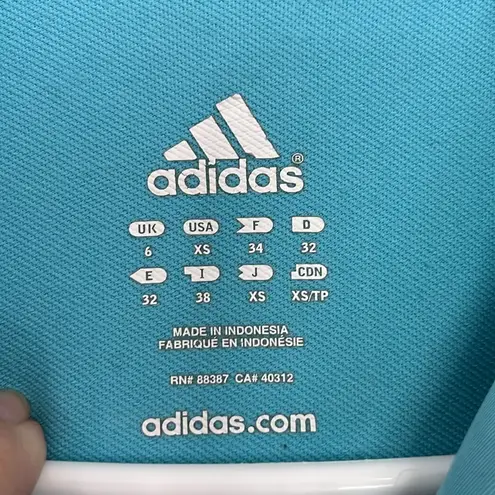 Brand: Adidas Size: XS Color: Light turquoise blue Pit to Pit: 16" Shoulder to Hem: 22" Fe... Show more