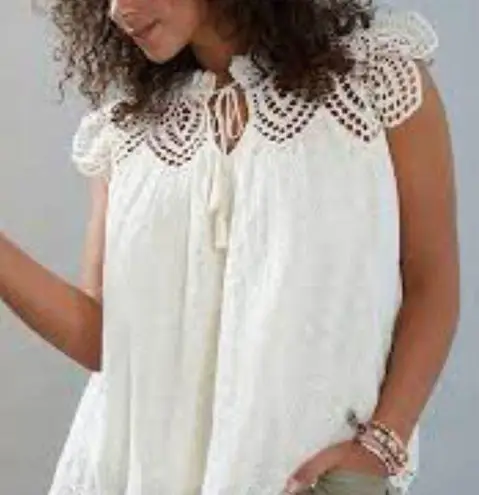Adiva Eyelet Tassel Tie Flutter Sleeve Top Size L - $31 - From Krystal