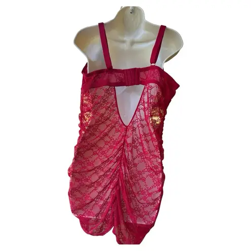 This vibrant red chemise from Adore Me features a delicate lace pattern and a flattering sweetheart... Show more