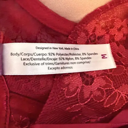 Burgundy lace corset bustier top from Adore Me. This stunning piece features intricate floral lace d... Show more