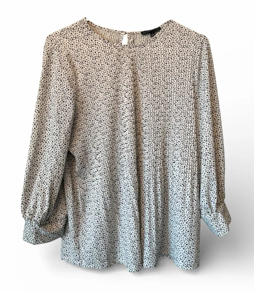 Chic blouse with a black and white pattern. Features a relaxed fit and long sleeves. Ideal for versa... Show more