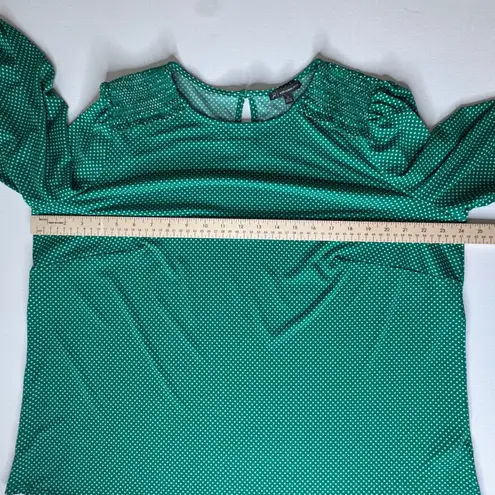 Keywords: Adrianna Papell, blouse, top, polka dot, green, white, long sleeve, plus size, 1X, womens, casual, office, keyhole, classic, retro, Green Blouse, Polka Dot Top, Workwear, Fall Fashion, Business Casual, Stretch Top, Keyhole Blouse, Ruched Shoulder, Long Sleeve Blouse, Vintage Style, Office Look, Stylish Top