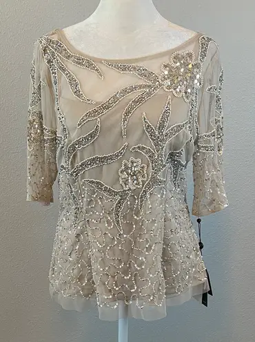 Size 10 100% polyester Sheer sequined overlay with tank top liner Back zipper closure Boatneck New... Show more