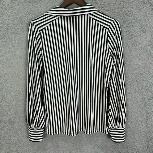 Adrianna Papell top womens medium green black vertical stripe faux wrap blouse used condition with... Show more