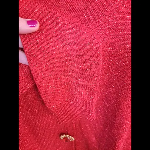 Adrienne Vittadini Button Up Red Sparkly Cardigan Size:S Pit to Pit:19 Sleeve:29 Length:22 Please... Show more