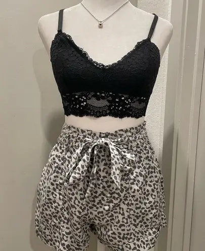 Aerie American Eagle Outfitters AEO White & Gray Leopard Cheetah Animal Printed Paperbag Cuffed Shor... Show more