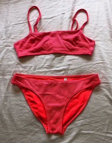 Bright salmon orange / pink color bikini top and bottom set. Both size small. In good condition