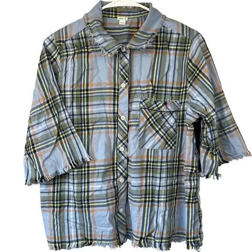 Aerie Womens Blue Multicolor Plaid Half Sleeve Raw Hem Collared Button Up Shirt No Flaws of Note 55%... Show more