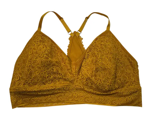In great condition! Very pretty golden yellow color. Stretchy lace material with lined cups. Adjusta... Show more