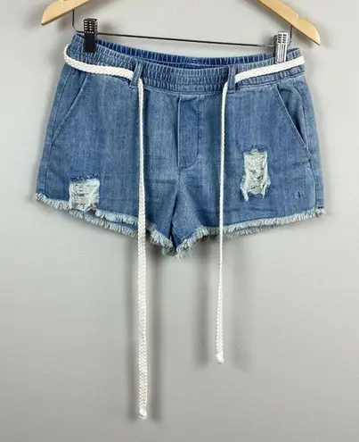 Aerie Denim Shorts S Blue Jean Belted Cut Off Fray Hem Distressed Women's Small NWOT New without ta... Show more