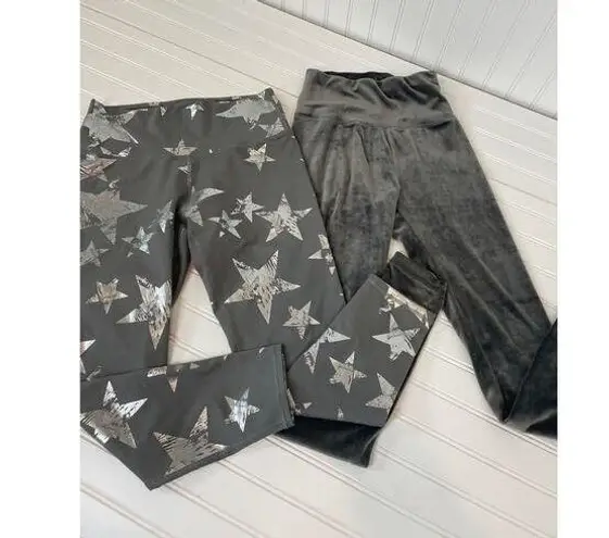 SET OF 2 Leggings; 1 - Gray Star Print PUll on Leggings 1 - Gray Velvet Pull on Leggings Size Medium... Show more
