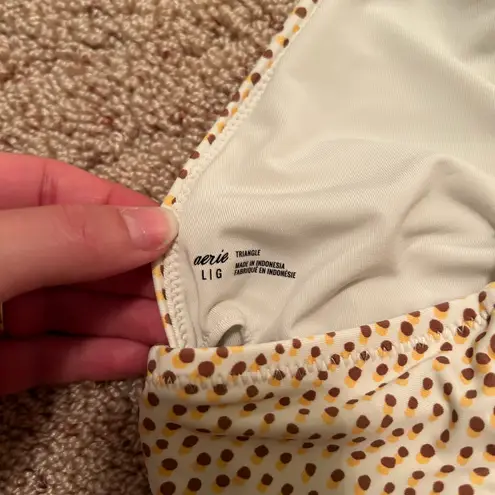 This is an Aerie Printed Ruffle Tie Longline Triangle Bikini Top in size large. The color is desert... Show more