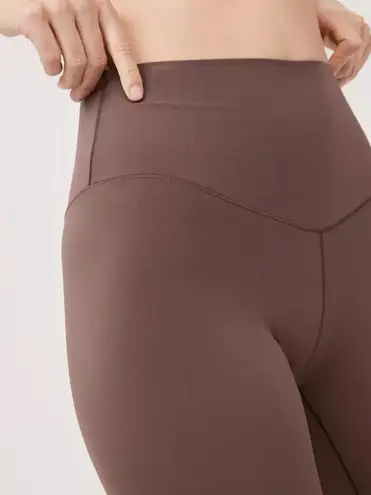 7/8 length High waisted Short inseam (falls at ankle) 88% nylon 12% elastane
