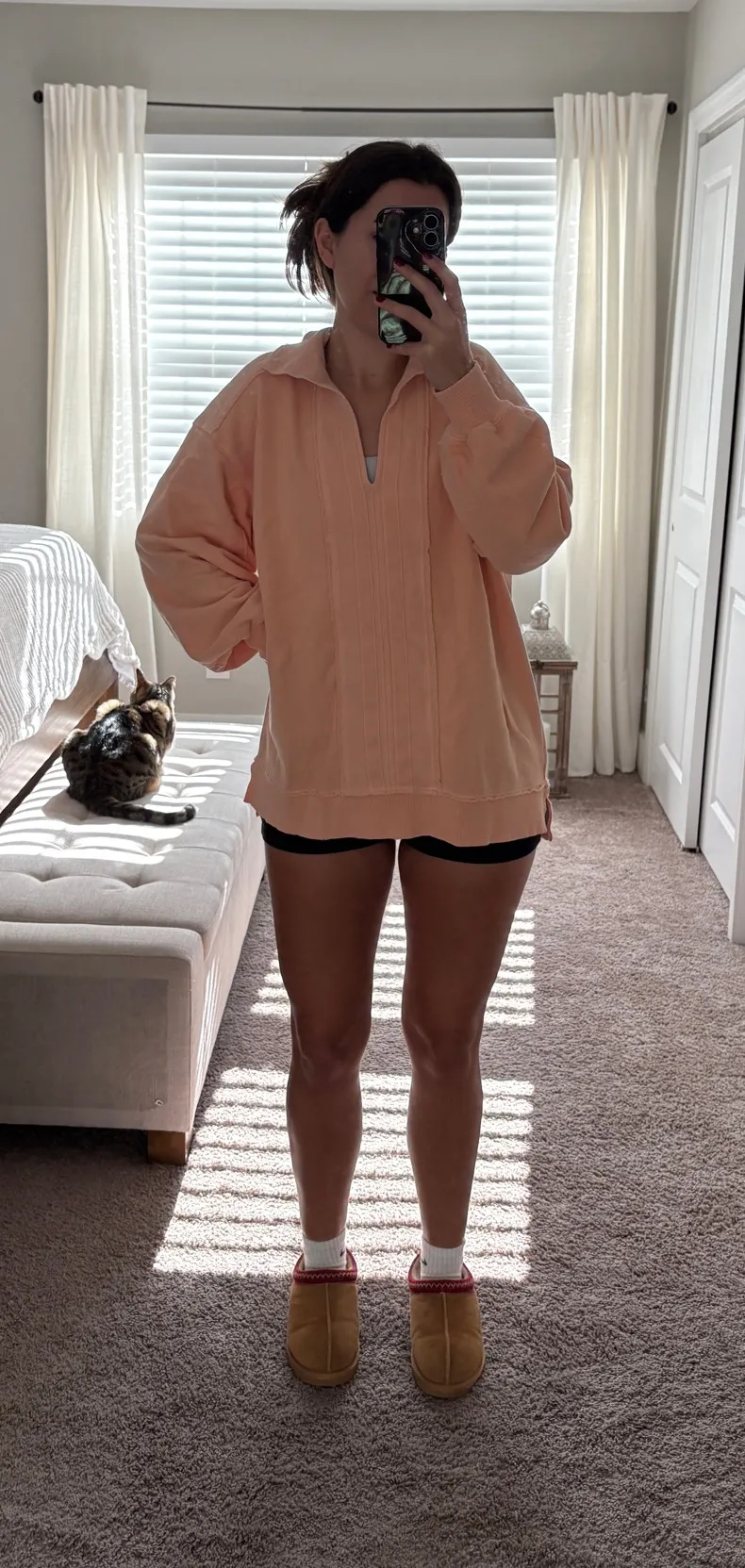 Oversized sweatshirt, size XS but can fit size medium for a tighter fit. Color: pastel orange