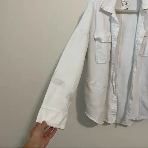 Aerie Size medium White Button front Shacket Some spots of purple color bleed as shown Otherwis... Show more