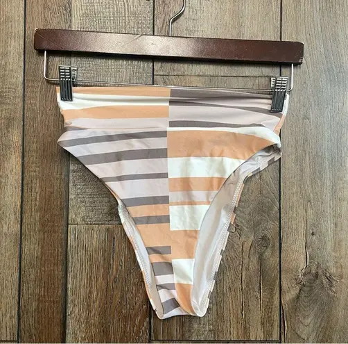 Womens Size Small Bikini Bottom Neutral Tan Beige Mixed Stripe High Cut Cheeky Very Good Pre Owned... Show more