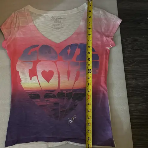Style: Short sleeve graphic 70’s vibe tee with heart design Color: Pink/Purple Size: M Armpit: 17”... Show more