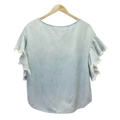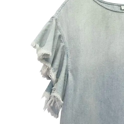 Raw edge hems at the sleeves give this style an edgy flair. A scoop neckline and boxy fit finish the... Show more