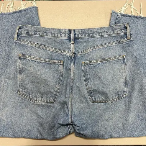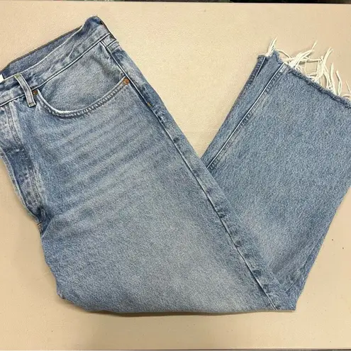 AGOLDE 90's Jean Cropped Light Wash Blue Denim Raw Hem 5 Button Fly Pant Size 31 100% organic cotto... Show more