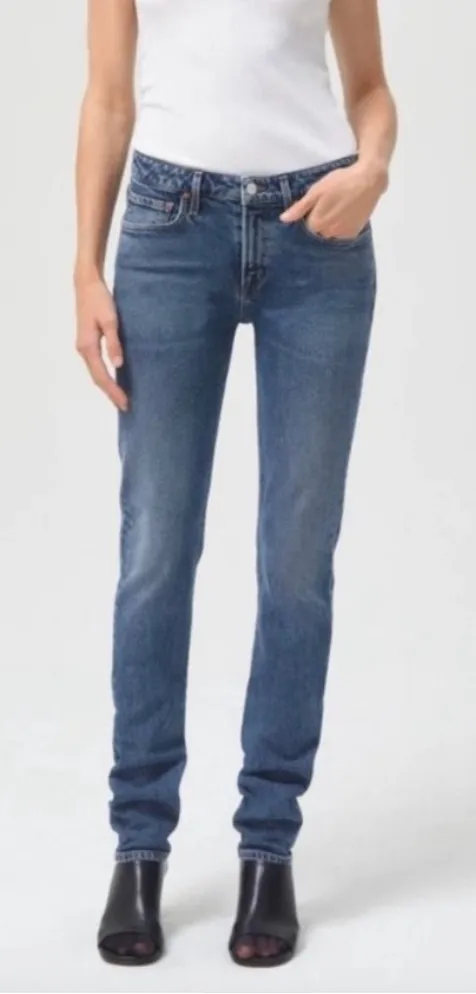 AGOLDE is a premium denim label focused on timeless washes, vintage-inspired fits, and practical designs. The LA-based label’s 90s jeans, ‘pinch waist’ high-rise jeans, cut-off denim shorts, tank tops, and basic tees are frequently spotted on celebs and supermodels.
