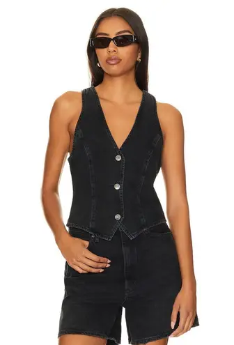 Agolde Heller Sleeveless Black Denim Button Front Structured Vest in Spider XS Excellent preowned c... Show more