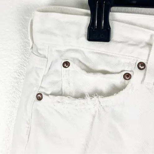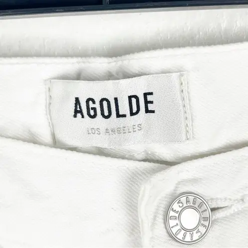 AGOLDE Parker 100% Organic Cotton White High Rise Button Fly Five Pockets Distressed Fray Hem Shorts... Show more