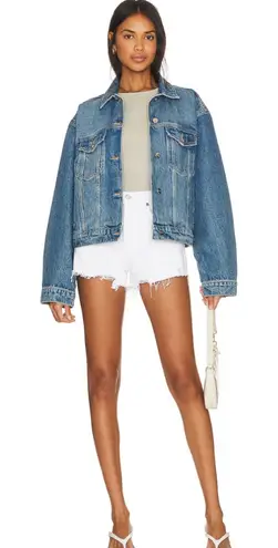 Agolde Parker white organic cotton denim button fly raw hem high rise shorts. • 100% organic cotton... Show more