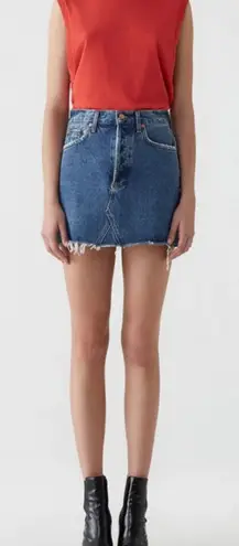 Agolde Quinn Denim Skirt. Size 28. Intentionally distressed. Button front closure. Excellent used co... Show more