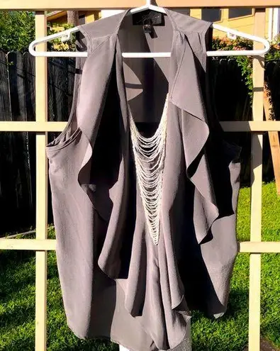 Akiko Silk Ruffle Sleeveless Beaded Top S Gray - $38 - From Christine