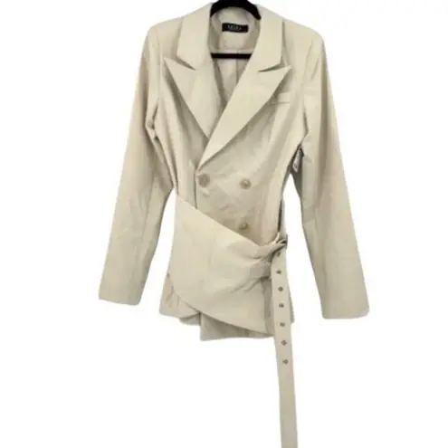 Akira Ivory Double Breasted Street Lights Belt Peak Lapel Wrap Blazer Medium Brand: Akira Departmen... Show more