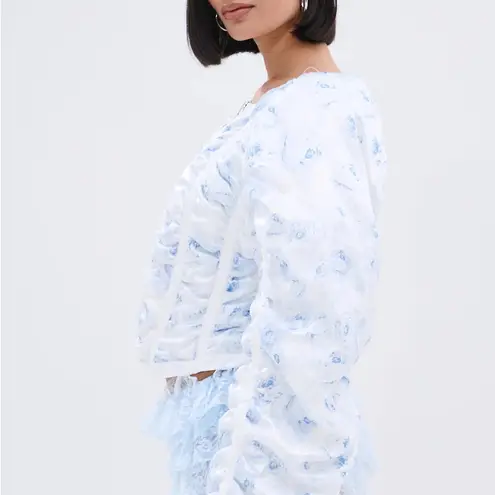 This elegant blue floral jacket is perfect for adding a touch of sophistication to any outfit. The d... Show more