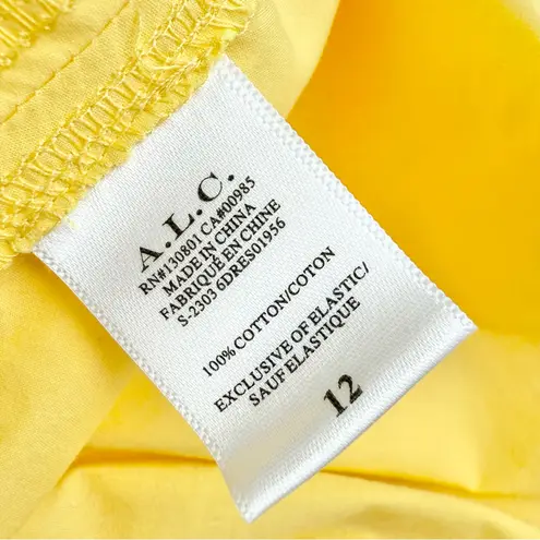 ALC Adriana Smocked Handkerchief Cotton Midi Sundress Size 12 Color Sunlit Condition New With Tags Sleeveless Smocked bodice Cutout back Asymmetrical hem Ruffle trim at waist Unlined summer, sundress, flowy, midi, feminine, casual, bright, lightweight, smocked, adjustable, sleeveless, versatile, beach, relaxed, comfortable, breathable, elegant, vibrant, playful, resort, vacation