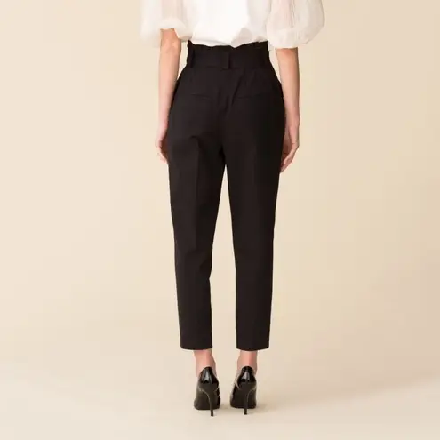ALC Diego Pants in Black. Fabric: Stretch suiting. Adjustable belt at paperbag waist. Seamless hem. Ankle length, skinny silhouette. Hook-and-eye and hidden zip. Slant hip and welt back pockets. Shell: 82% cotton/16% Tencel lyocell/2% elastane. Perfect for the office, date night, business meeting, etc. Paper bag waist belted pants. Trousers. -Size 0 -13.5" waist flat, 12.5" rise, 27" inseam -Excellent used condition: there are some markings at top of waist shown from store's pants hanger but should improve with time/dry cleaning.