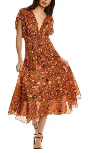 A.L.C. Lucia Floral Smocked Midi Dress Burnt Orange Womens 4 Shirred Bodice NEW A.L.C. 'S Lucia Dre... Show more