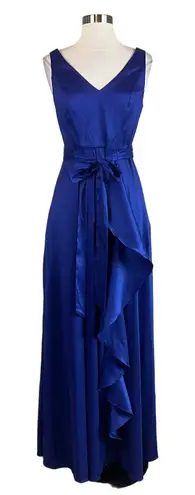 Alex & Eve by Alex Evenings Ruffled Long Gown Size 4 ~ Color Royal Blue Retail Price $199 New with tags, never worn, no defects Alex & Eve take your event-ready style to the next level with this belted gown designed with a cascading ruffle and two side pockets. ~ Sleeveless ~ V-neckline and back ~ Attached self-tie belt ~ Cascading side ruffle ~ Side inseam pockets ~ A-line gown silhouette ~ Long, floor-length hemline ~ Lightweight, textured satin fabric ~ Bra-friendly ~ Concealed back zipper with hook and eye closure ~ Lined at bodice~ Stretchable polyester/nylon/spandex Measurements: Length from top of shoulder to bottom of hem: 58" Bust: 34" Waist: 28" Hips: 48" Ideal for these occasions: Gala, Black Tie Event, Wedding Guest, Bridesmaid, Mother of the Bride, Mother of the Groom, Quinceanera, Pageant, Formal Event, Evening Out, Military Ball, Prom, Mardi Gras, Holidays, New Years Eve
