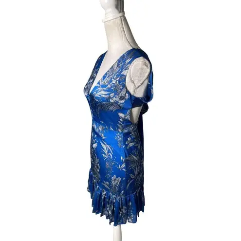 Alexis Cascara V-Neck Sleeveless Dress - Size XS Great preowned condition - light fraying on shoulder which can be trimmed off Color: Blue MSRP: $484 Fresh and flirty, this palm-printed Alexis mini is finished with a tie-front for flattering definition. 100% Polyester Hourglass Sleeveless V-neckline Center back zipper with hook-and-eye closure. Fully lined 16” chest 12.5” waist 16” hips 32” length Tags: mini, designer, cocktail, party, wedding guest, special occasion, flirty, cut-out, cutout, pleated, floral, spring, summer Size: Womens XS Condition: Pre-Owned Good