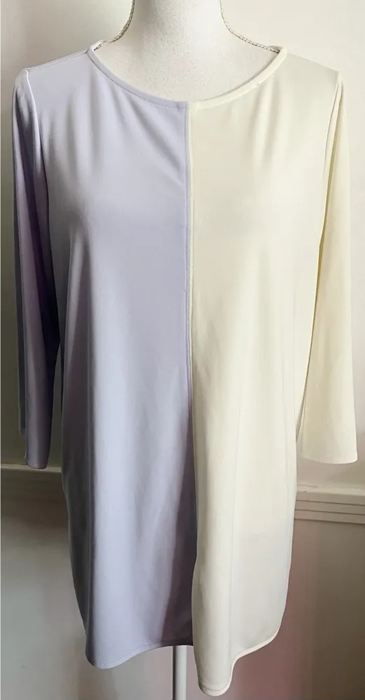 Size large Pastel Blueish/Lavender Ivory color block Tunic length Great pre loved condition. See tag for fabric content and details (if not posted please ask). • Comes from a pet friendly home • I may not be original owner • The item or items you purchase may be pre owned • I always recommend washing/cleaning before you wear/use, even if NWT • If item has a care tag, please reference before you wash or clean for instructions. Not all items have a care tag. Some items may be dry clean only. • Non Clothing items, ensure you clean before you use…Not all items have cleaning instructions on them. See my Meet The Posher listing for any additional notes not mentioned above before purchasing!