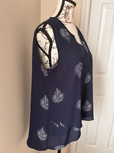 Alfani Tiered Navy Blue with Leaf Pattern MP Cottagecore Peasant Blouse High/Low Size PM - $18 - From Kara