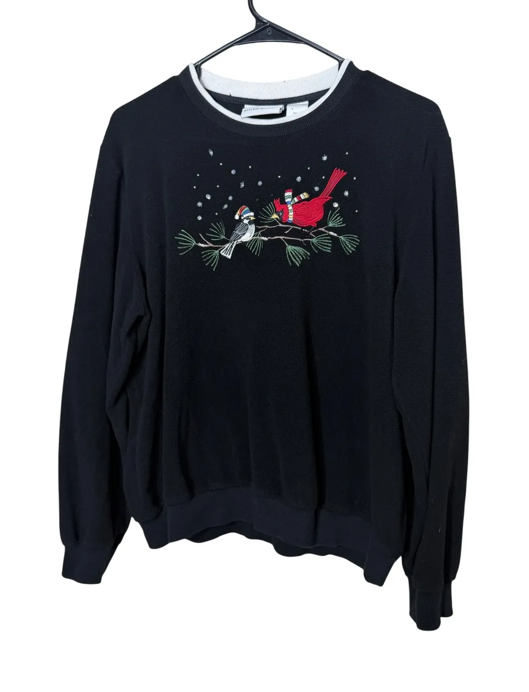 Alfred Dunner Black Cardinal Bird Embroidered Fleece Sweatshirt Size Medium - $25 - From Ashley