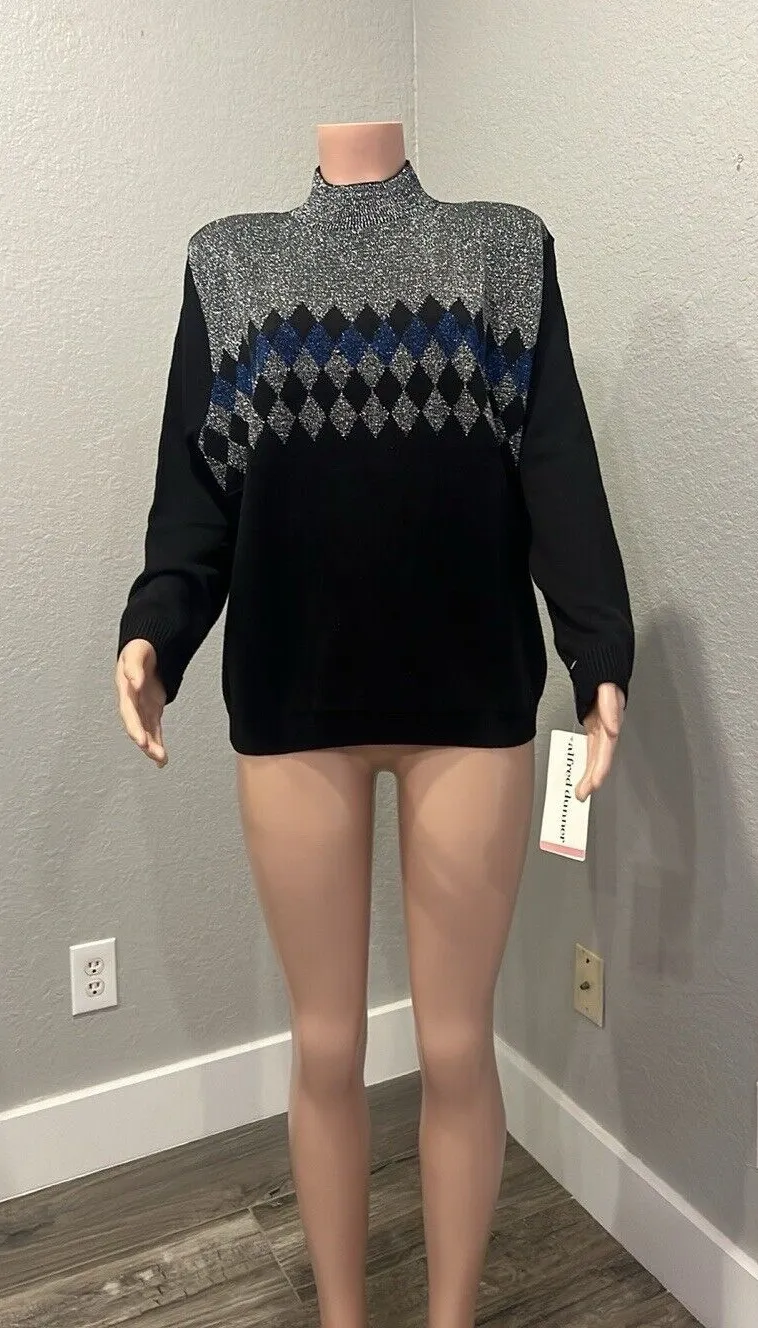 Alfred Dunner Diamond Pattern Sweater Size 1X LA SCALA BLACK SHINE SILVER NWT#83 - $30 New With Tags - From Bertha