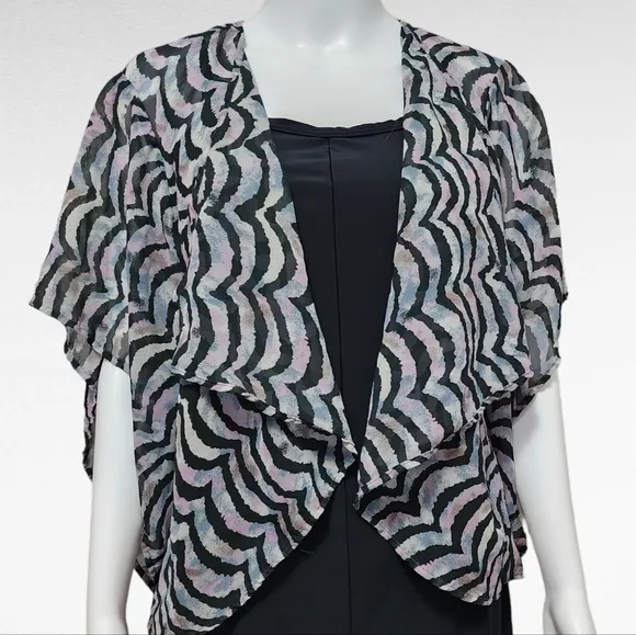 Ali & Kris Lavender Black Scalloped Pattern Open Front Kimono Size Large A scalloped pattern in bla... Show more