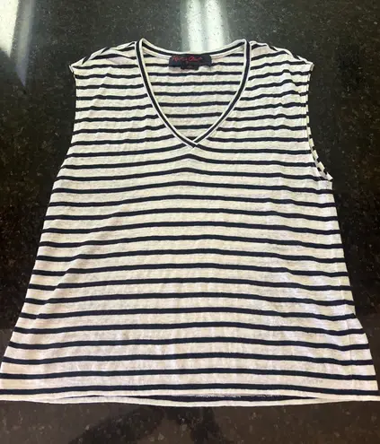 Alice And Olivia By Stacey Bendet AIR Linen Tank Blouse Shirt V-neck Sz Sm Navy Tan - $17 - From Crystal