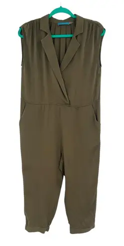Alice + Olivia Olive Green Silk Sleeveless Collared Surplice Jumpsuit Sleeveless jumpsuit featurin... Show more