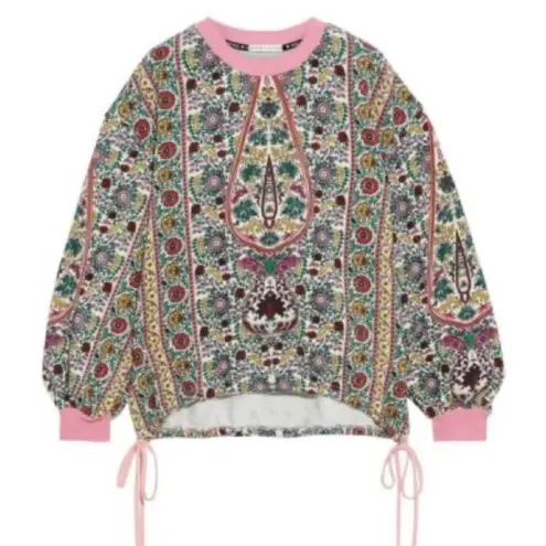 Excellent Used Condition Size medium Alice + Olivia "Amirah" floral print sweatshirt with solid ri... Show more