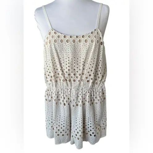 Alice & Olivia Ivory Nude Shorts Romper Eyelet Embroidery Size Small Scoop neck, Sleeveless, Adjus... Show more