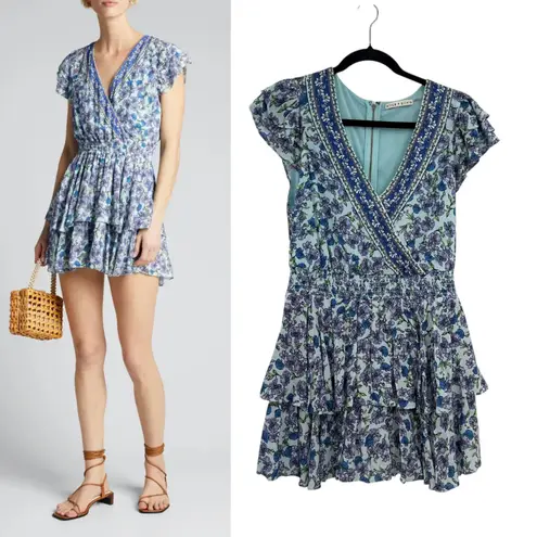 Alice + Olivia Mariska Ruffled Short Romper V-neck Back zip with hook-and-eye closure Short ruffled... Show more