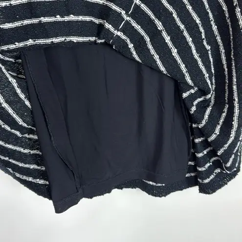 Chic and stylish sleeveless dress featuring black and white stripes with a subtle gold shimmer in bl... Show more